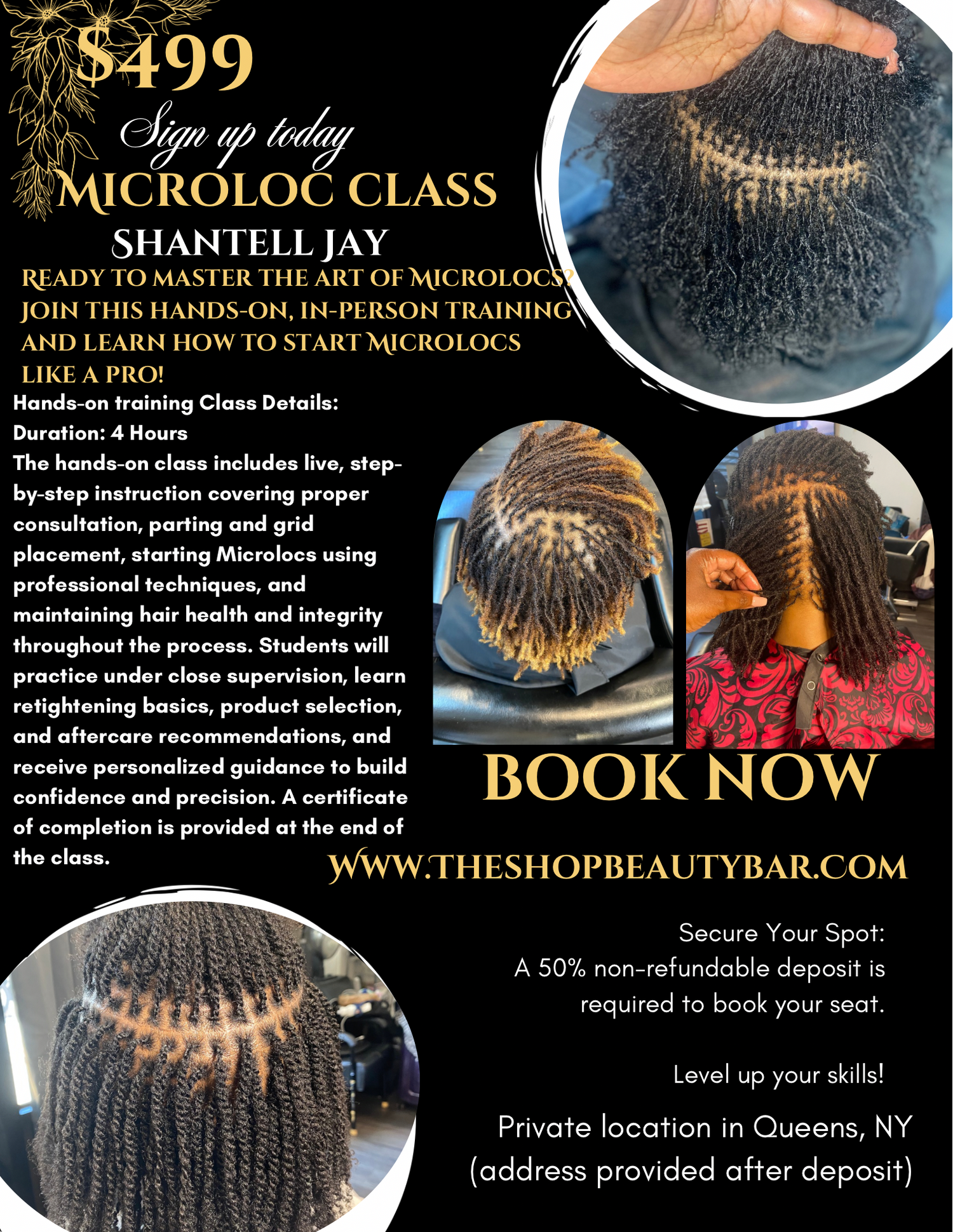Join our comprehensive Microlocs training program to master the art of starting Microlocs, achieve precise sectioning for clean parting, and effectively prepare clients' hair. As a bonus, you'll receive three months of free access to expert guidance, empowering you to excel in consultations, pricing, and maintenance for healthy loc development.